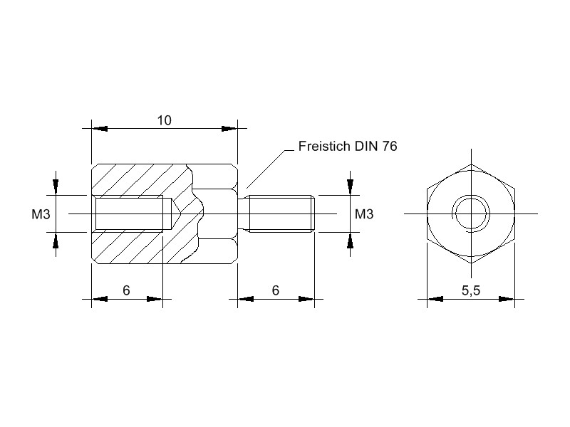 - Länge M3-Außengewinde: 6mm