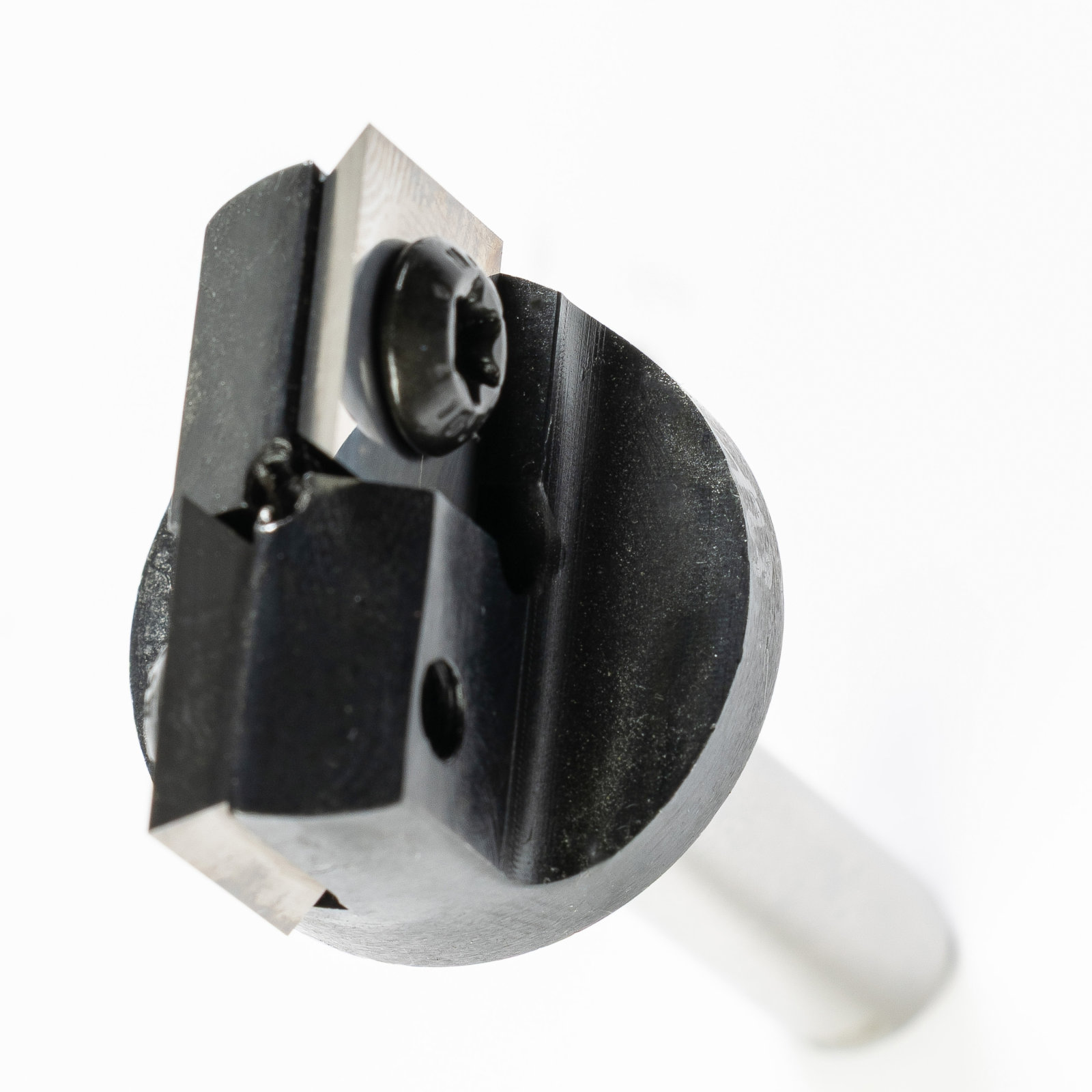 - Erhöhte Standzeit: Wenn eine Schneide stumpf wird oder beschädigt ist, kann sie einfach gedreht oder ausgetauscht werden, ohne den gesamten Fräser ersetzen zu müssen. Bei den einzelnen Schneiden hat man insgesamt je 4 verschleißfeste Kanten, die nacheinander genutzt werden können. Ein entsprechendes Werkzeug liegt bei.