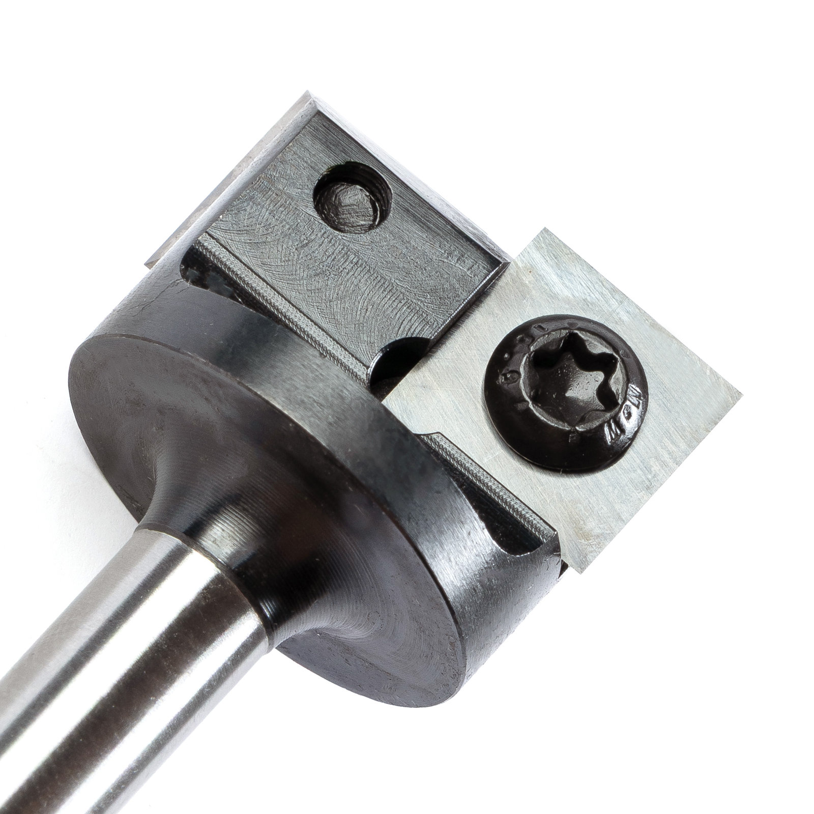 Dieser Fräser ist mit zwei Wendeplatten ausgestattet, die jeweils eine Schneidekante bieten. Das sorgt für eine längere Standzeit und weniger Ausfallzeiten, da bei Abnutzung die Wendeplatte einfach gedreht werden kann und so eine neue Schneide genutzt werden kann. Die gleichmäßige Lastverteilung auf die Schneiden verringert den Verschleiß und sorgt für eine stabilere Bearbeitung, auch bei hohen Schnittgeschwindigkeiten. Der Wendeplattenfräser ist vor allem für die Bearbeitung verschiedenster Holzarten und Kunststoffe geeignet.Produktvorteile: