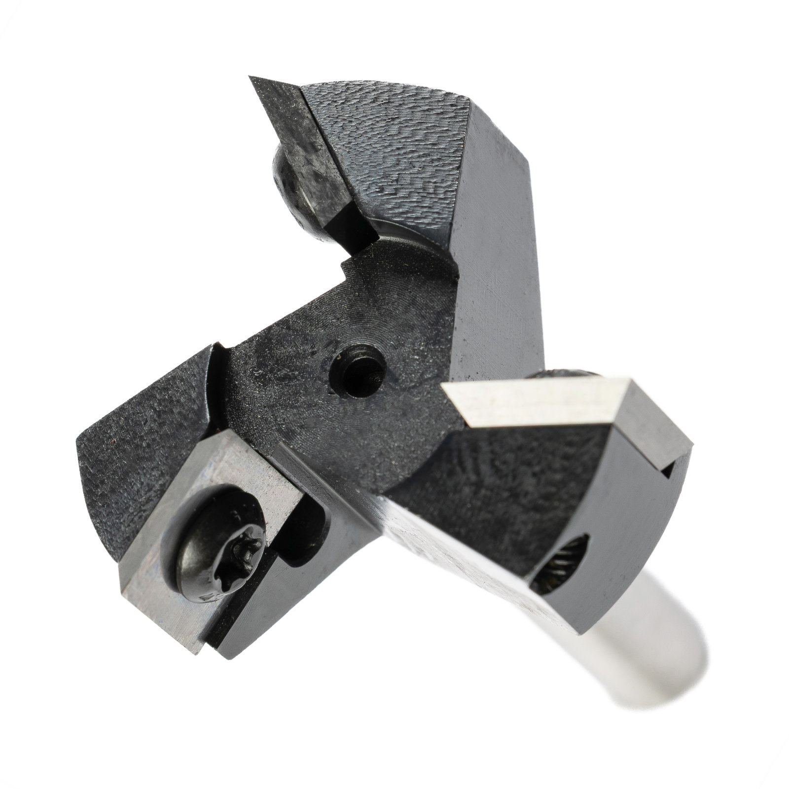 - Erhöhte Standzeit: Wenn eine Schneide stumpf wird oder beschädigt ist, kann sie einfach gedreht oder ausgetauscht werden, ohne den gesamten Fräser ersetzen zu müssen. Bei den einzelnen Schneiden hat man insgesamt je 4 verschleißfeste Kanten, die nacheinander genutzt werden können. Ein entsprechendes Werkzeug liegt bei.