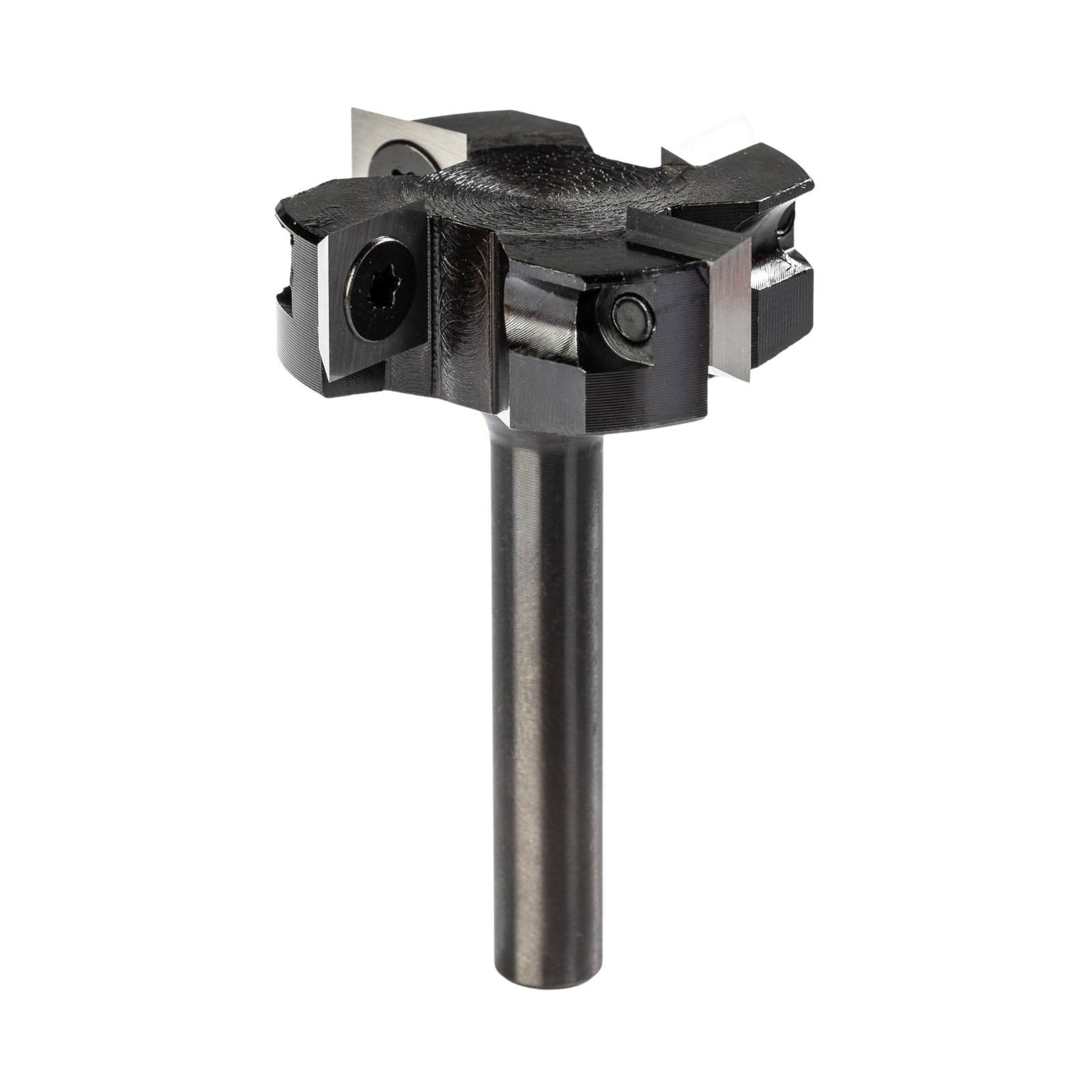 Dieser Fräser ist mit vier Wendeplatten ausgestattet, die jeweils eine Schneidekante bieten. Das sorgt für eine längere Standzeit und weniger Ausfallzeiten, da bei Abnutzung die Wendeplatte einfach gedreht werden kann und so eine neue Schneide genutzt werden kann. Die gleichmäßige Lastverteilung auf die Schneiden verringert den Verschleiß und sorgt für eine stabilere Bearbeitung, auch bei hohen Schnittgeschwindigkeiten. Der Wendeplattenfräser ist vor allem für die Bearbeitung verschiedenster Holzarten und Kunststoffe geeignet.Produktvorteile:
