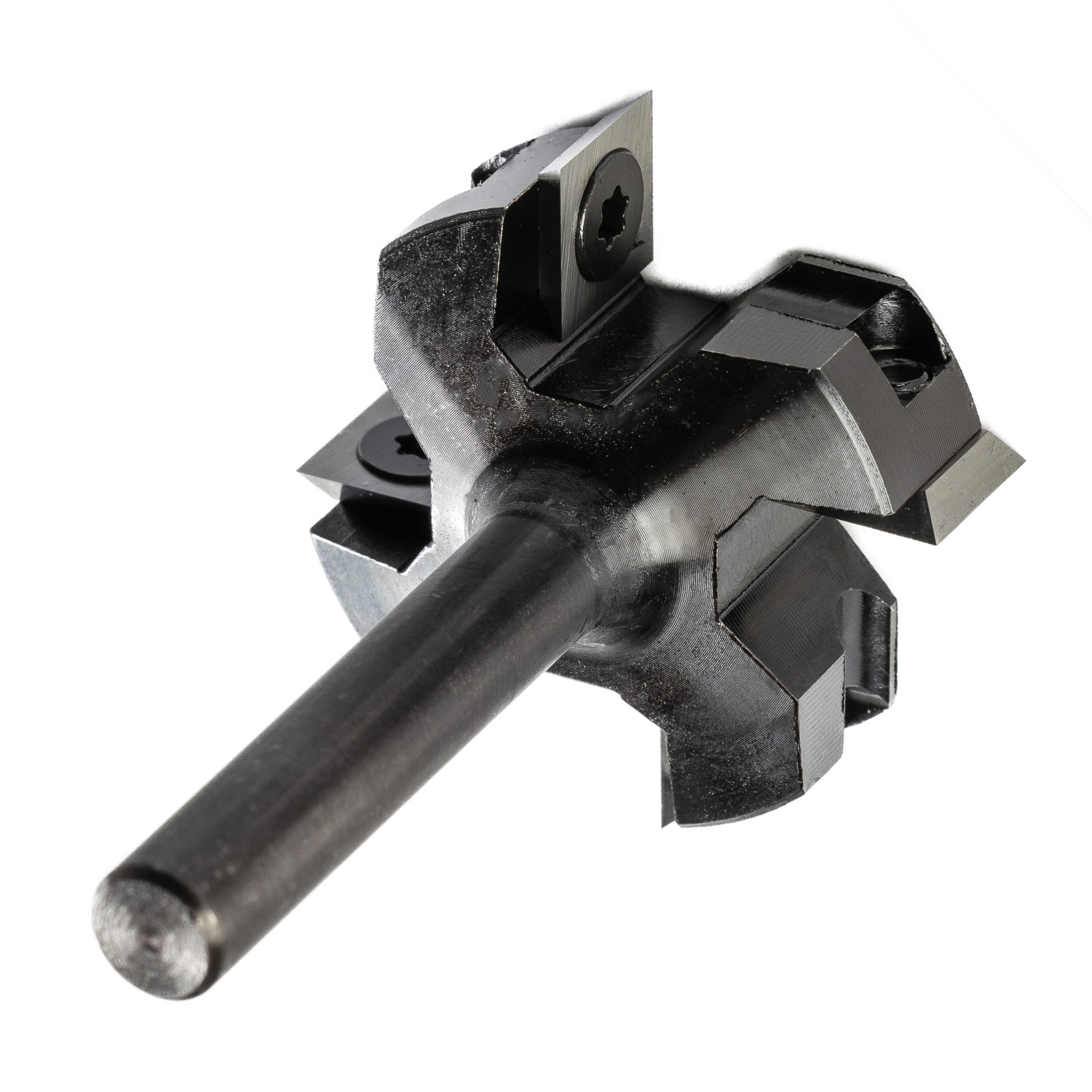 - Erhöhte Standzeit: Wenn eine Schneide stumpf wird oder beschädigt ist, kann sie einfach gedreht oder ausgetauscht werden, ohne den gesamten Fräser ersetzen zu müssen. Bei den einzelnen Schneiden hat man insgesamt je 4 verschleißfeste Kanten, die nacheinander genutzt werden können. Ein entsprechendes Werkzeug liegt bei.