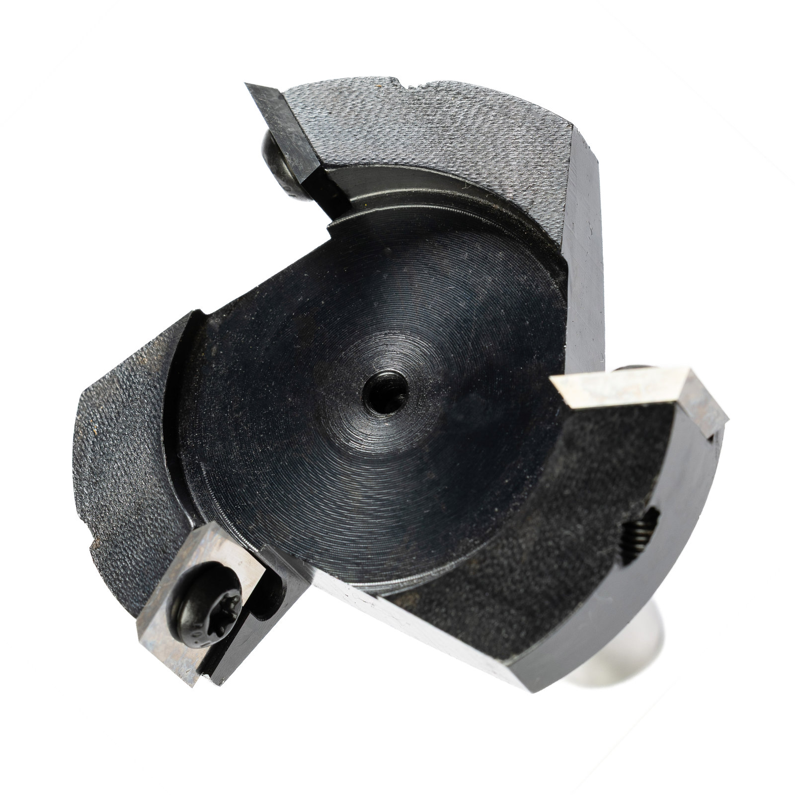 Dieser Fräser ist mit drei Wendeplatten ausgestattet, die jeweils eine Schneidekante bieten. Das sorgt für eine längere Standzeit und weniger Ausfallzeiten, da bei Abnutzung die Wendeplatte einfach gedreht werden kann und so eine neue Schneide genutzt werden kann. Die gleichmäßige Lastverteilung auf die Schneiden verringert den Verschleiß und sorgt für eine stabilere Bearbeitung, auch bei hohen Schnittgeschwindigkeiten. Der Wendeplattenfräser ist vor allem für die Bearbeitung verschiedenster Holzarten und Kunststoffe geeignet.Produktvorteile: