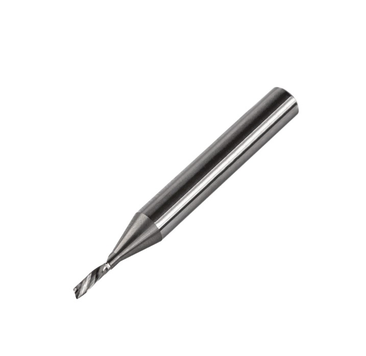 Unbeschichteter Einzahnfräser mit flachem Stirnanschliff für die Bearbeitung von Aluminium, NE-Metallen, Kupfer, Kunststoffen oder Holz.