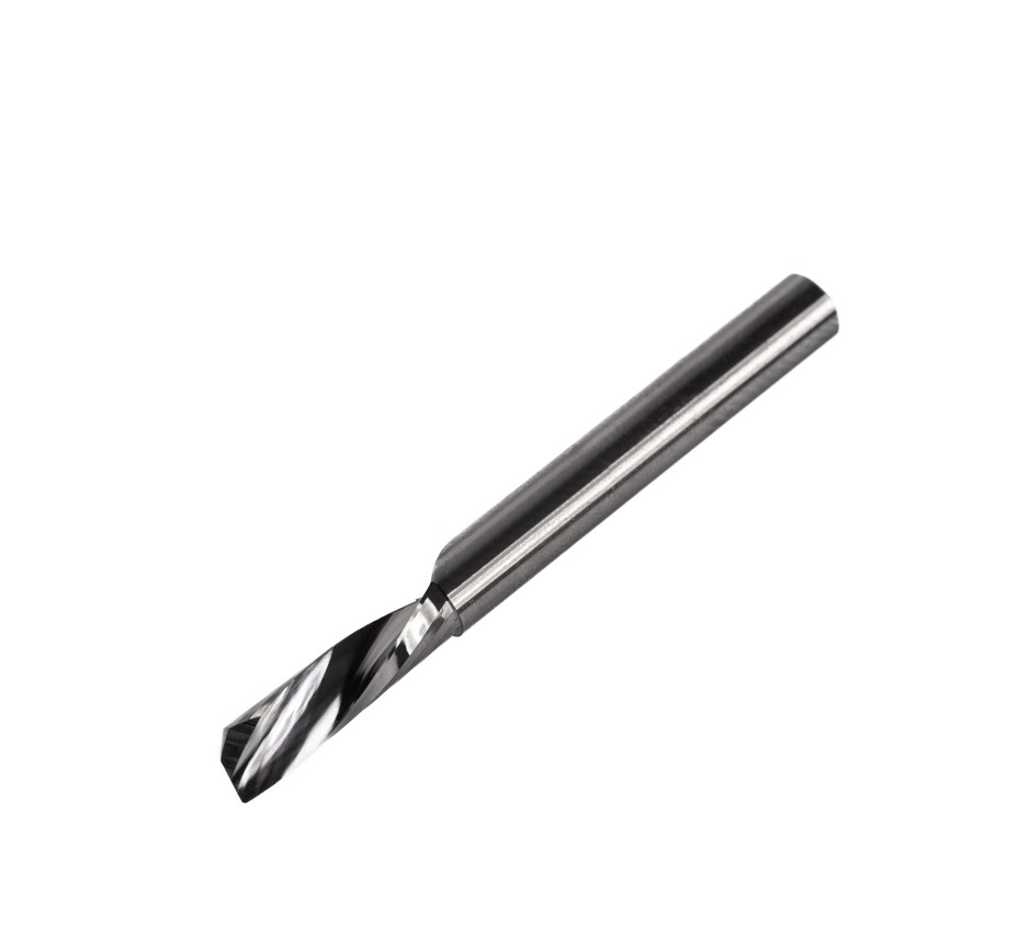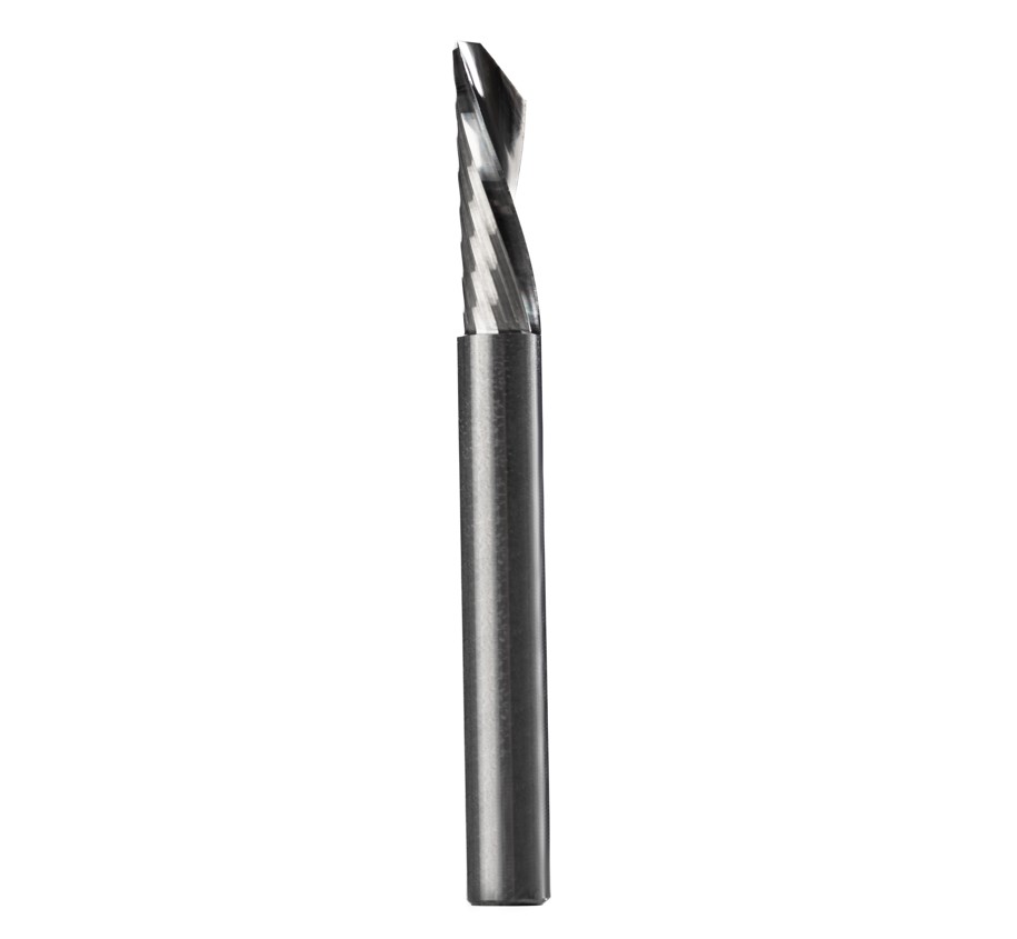 Unbeschichteter Einzahnfräser mit flachem Stirnanschliff für die Bearbeitung von Aluminium, NE-Metallen, Kupfer, Kunststoffen oder Holz.